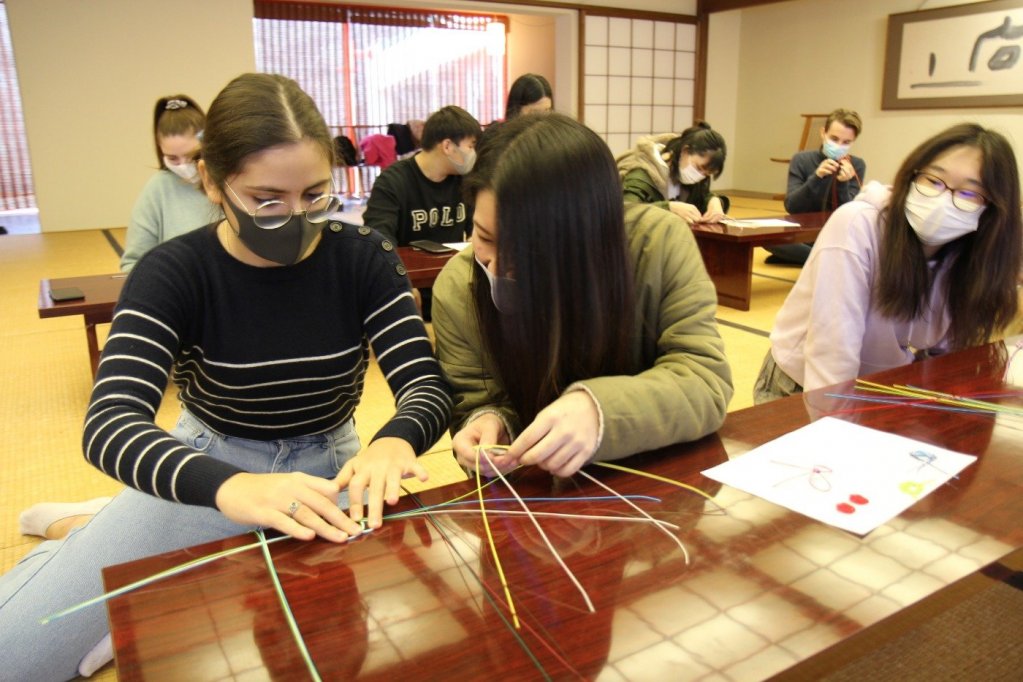 On Wednesday, December 9th, 2020, NUCB International students and Japanese students joined together to tie beautiful "Mizuhiki Knots" for the last Cultural Enrichment Activity of 2020.