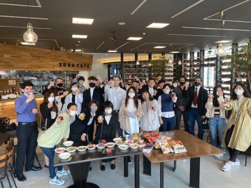 The tour concluded with an introduction of the IT support office, as well as the main administration building where students can speak in English to Academic Affairs, International Affairs, the Career Office and ask for student discounts for the bullet train etc at General Affairs. At the end of the tour, students gathered at our Sora Cafe for the snack party. Students were able to meet their new friends and freely talk in English or Japanese. Japanese students and current GBBA students (Senpai) talked to the new students on how best to adjust to the culture shock and make the most of their time in Japan.