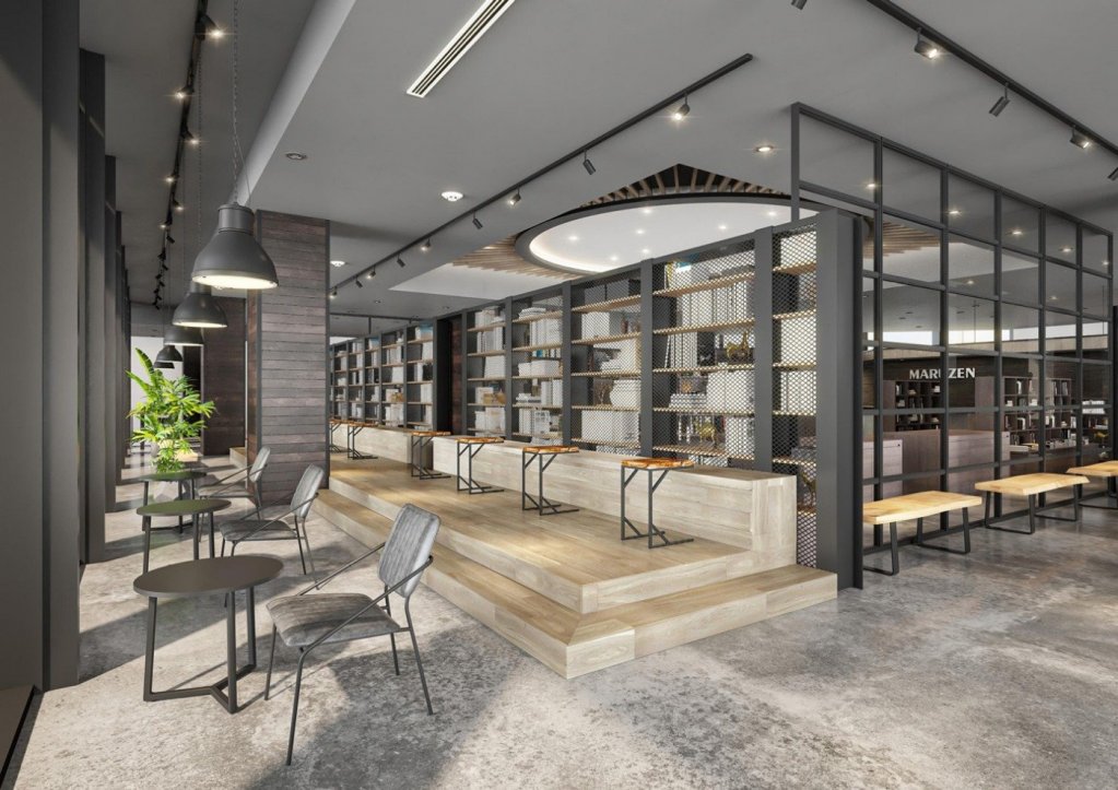 The open-air cafeteria zone is elegant, bright and spacious. It is a space where you can read books and self-study in peace.