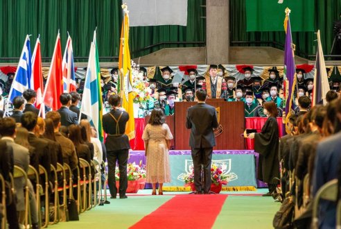 In his ceremonial address, President Hiroyuki Kurimoto spoke about three themes: "What is NUCB?", "MBA Education", and "Unconventional Dreams".