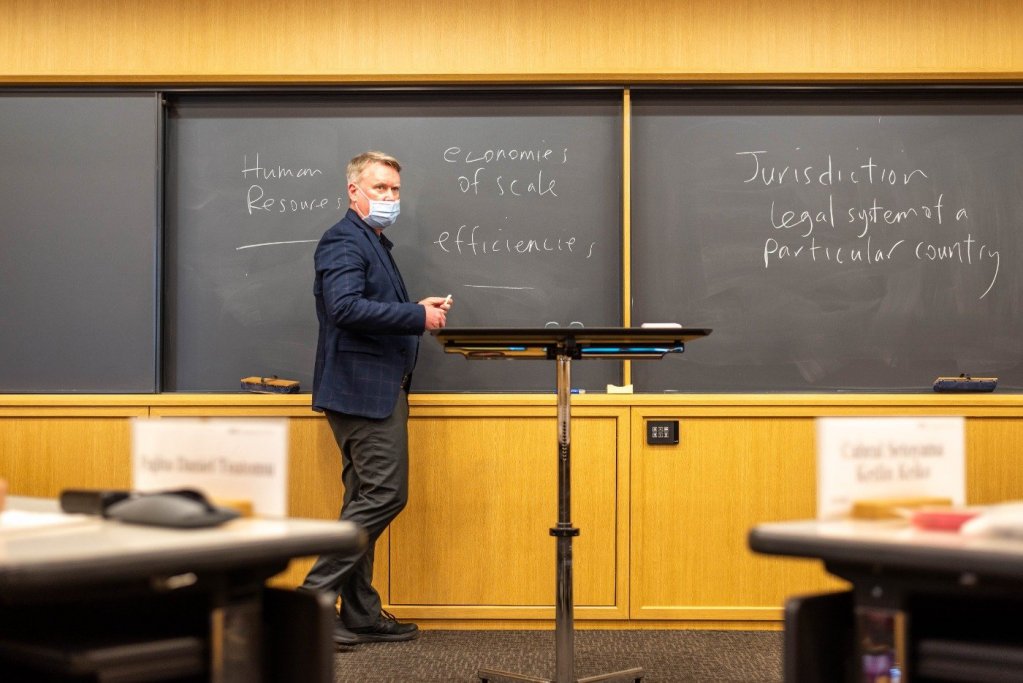 Boasting a high-resolution camera for blackboard visibility, state-of-the-art audio equipment for ease of communication between participants and faculty, and multiple displays transporting online participants from all over the world straight into the classroom, the hybrid classroom represents yet another step we have taken toward a future full of possibilities for higher learning and to transcend physical borders and limitations.