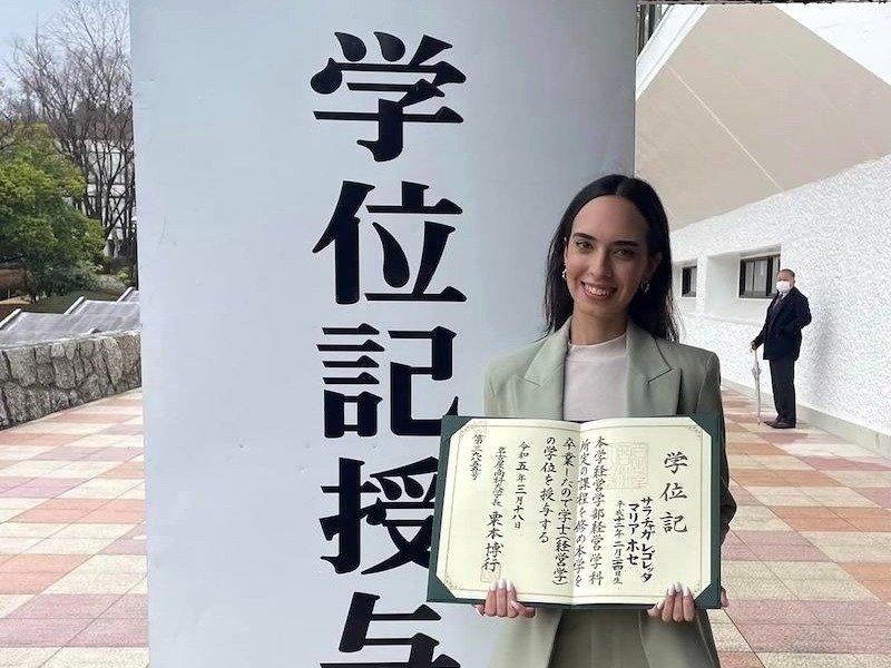 Graduating with top honors in the Global BBA Program, Maria Jose (Maho) was awarded the Outstanding Student Award as well as the NUCB Case Award at the Graduation conferment ceremony in March 2023.