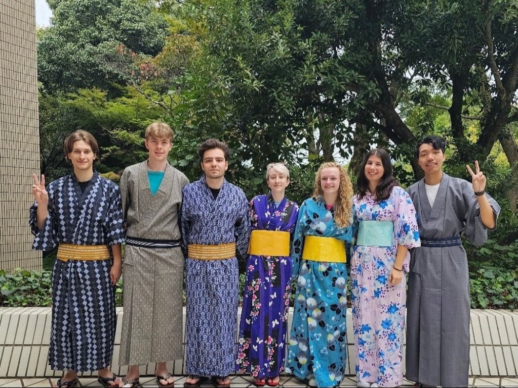 As a part of the annual Sagamine Festival held at NUCB Undergraduate School, exchange students were given the opportunity to wear a traditional summer kimono called a yukata for the event. Together with the yukata, students were given an obi (a Japanese-style belt) and geta (Japanese wooden sandals). These components of the outfit are crucial to complete the authentic look and feel of the yukata.