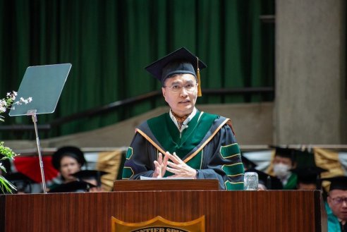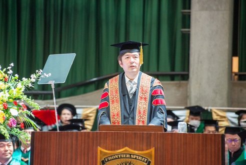 During his ceremonial address, Chancellor Hiroyuki Kurimoto spoke about three themes: "The Mission of Nagoya University of Commerce and Business", "MBA Education", and "Unconventional Dreams". The foundation of education at NUCB is centered around the ability to take action and continue to persist in the face of challenges and failures. Dr. Kurimoto strongly emphasized the importance of adopting an attitude of persistent perseverance, where students should strive to challenge themselves repeatedly, regardless of how many obstacles they may encounter.