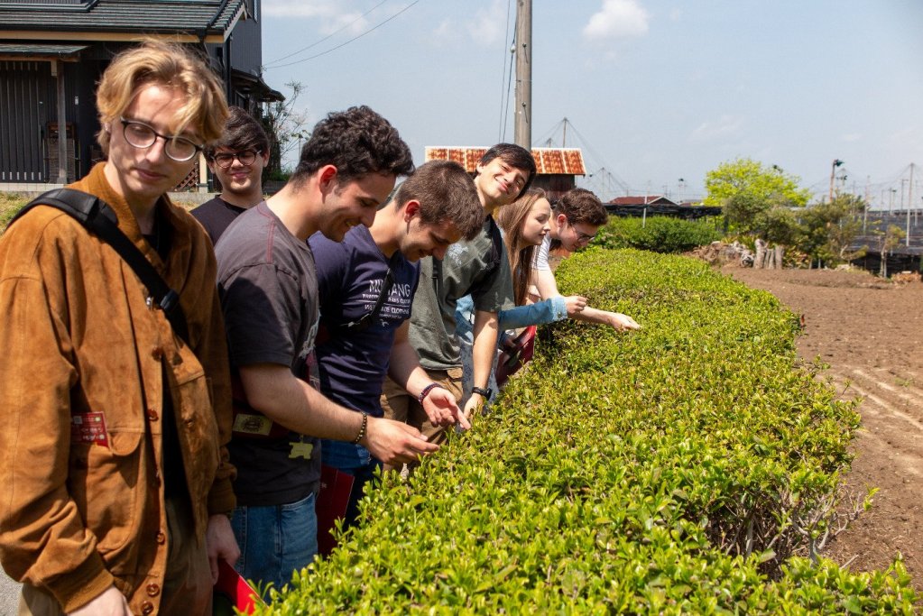 Every semester, NUCB hosts a number of cultural enrichment activities for its new and current students. These activities provide an excellent opportunity for students to learn about Japan and Japanese culture. This spring semester was no different, and students had the opportunity to visit a famous producer of matcha tea to see how it is made. The day kicked of at 9 AM, where students gathered on campus to be picked up. Our destination was Aoi Sencha, located in Nishio City.
