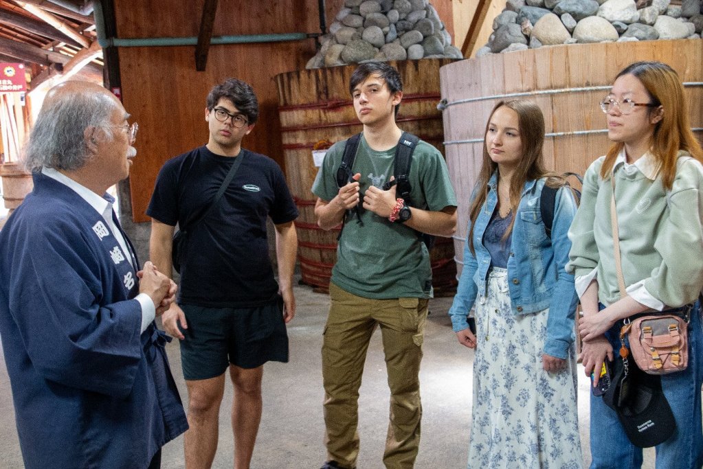After visiting Aoi Setcha and enjoying a tonkatsu lunch at a local restaurant, we moved on to a local Okazaki producer of miso paste, called Maruya Hacho Miso. We were greeted by the president of the company, who gave us an extensive tour of the facilities. Students learned about time-consuming process involved behind the production of hacho miso. Hacho miso is a type of miso paste from Japan that's made mainly from soybeans. Unlike other kinds of miso that also use rice or barley, hacho miso is made by fermenting soybeans alone with salt and a special kind of mold. It's darker, thicker, and has a stronger, deeper flavor compared to other miso varieties. People often use it in soups and sauces to add a rich, savory taste.