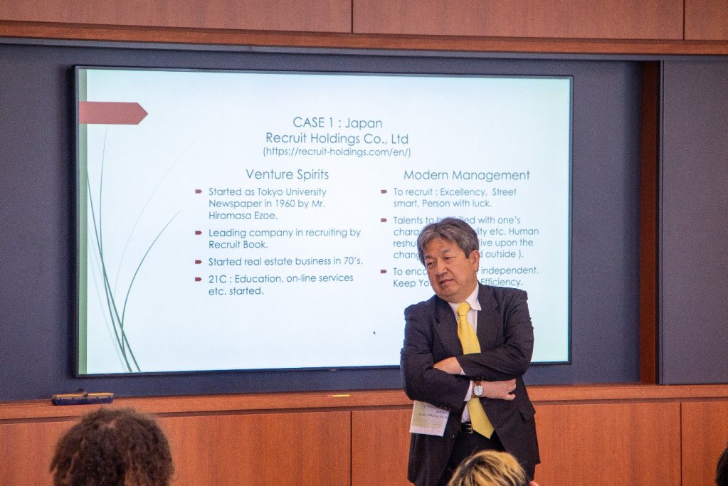 NUCB’s Chancellor, Dr. Hiroyuki Kurimoto joined us to give an opening speech which was very much welcomed by our students. This was followed by a presentation about family business by Mr. Jun Kawada, a part of the Family Business Network Japan. Our participants highly valued his insights, many students had a number of follow-up questions during his Q&A.