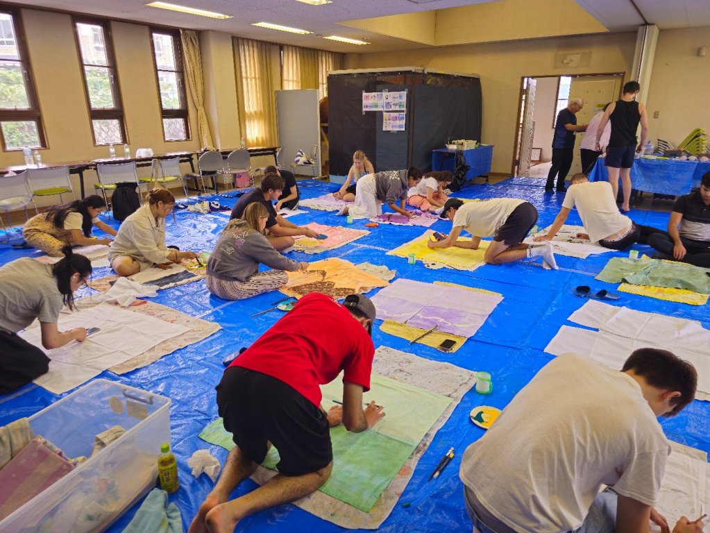 Following lunch, students were introduced to the art of noren painting. Noren are traditional Japanese fabric dividers, often hung in doorways of shops or homes, and typically feature designs that reflect the identity or purpose of the space. Each student had the chance to create their own custom design.