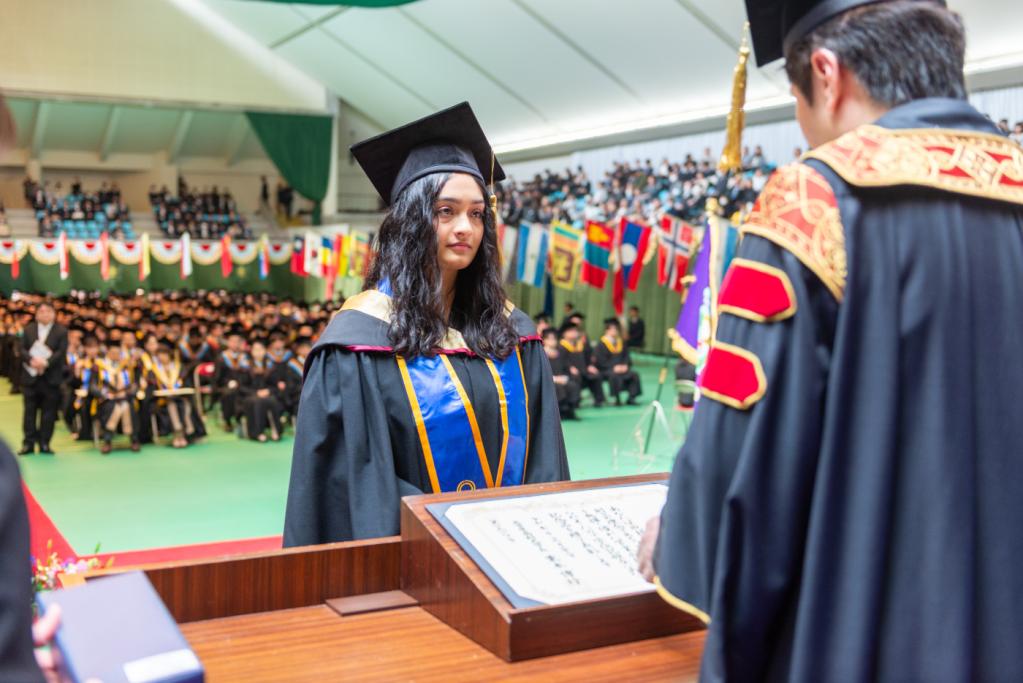 On Saturday, March 22, 2025, the Spring 2025 Graduation Ceremony was held at the Nisshin Campus. Global BBA students from Austria, Philippines, South Korea, India, and Libya completed four years of study and embarked on a new exciting journey.