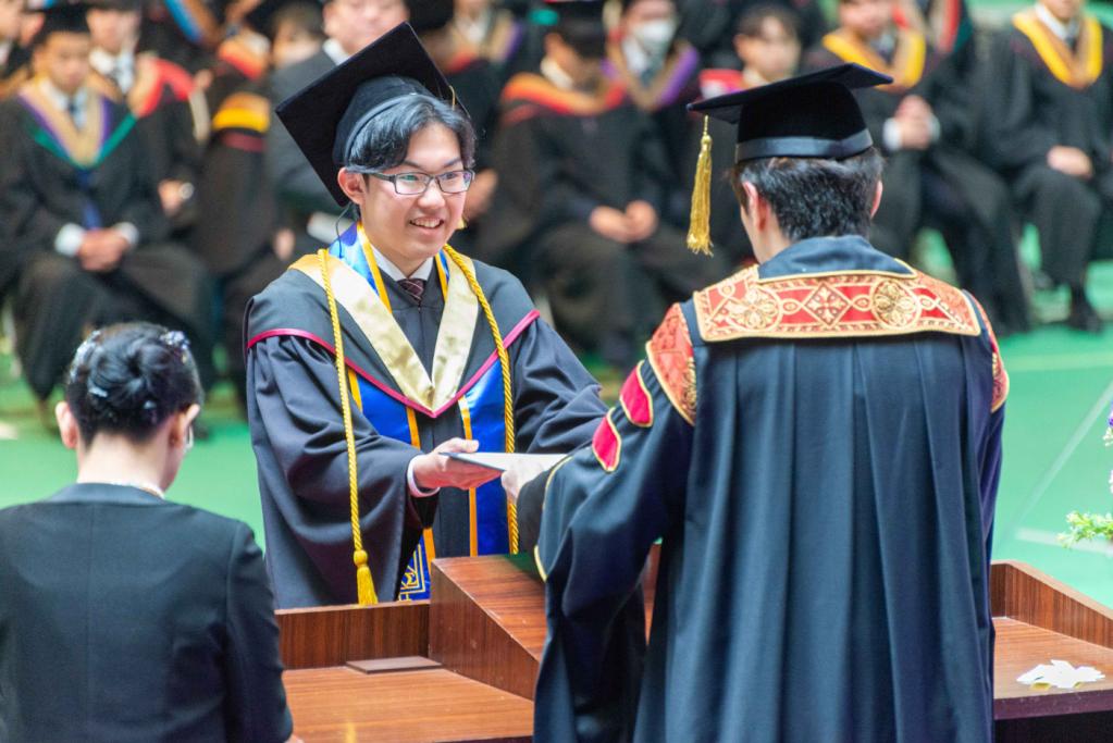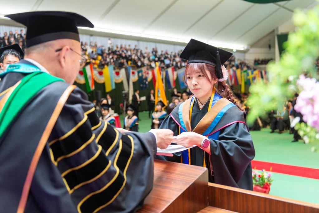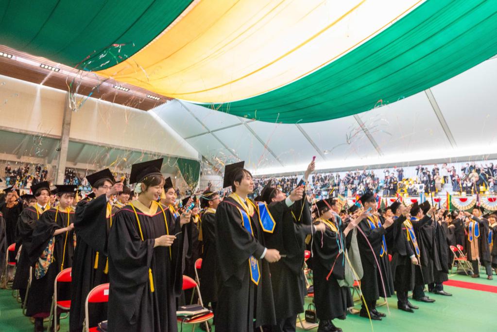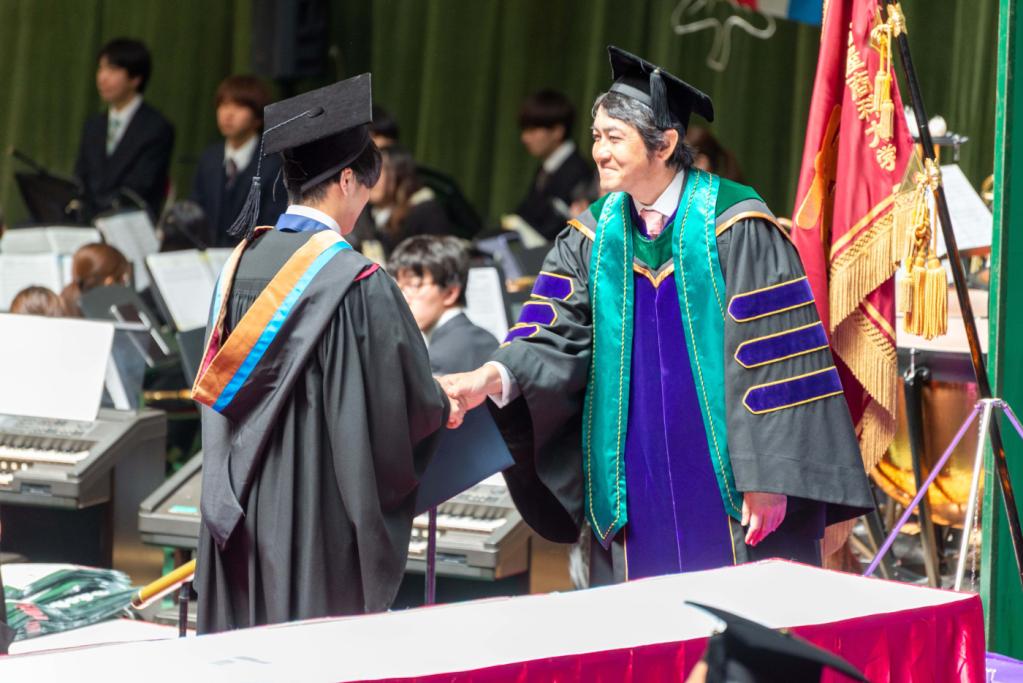 Chancellor Hiroyuki Kurimoto encouraged the graduates, expressing his passionate thoughts and wishes as they take off for the wider world.