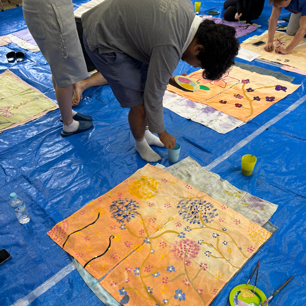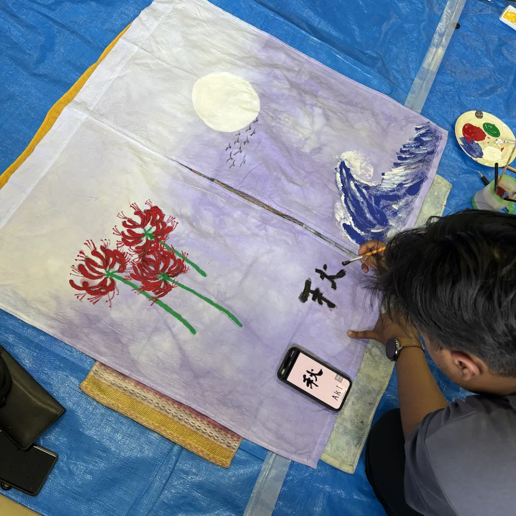 Ena is located along the historic Nakasendo (中山道), an old route connecting Edo (Tokyo) and Kyoto during the Edo period. This route once had 69 post towns (shukuba-machi), and Oi-juku (大井宿) in Ena was the 46th stop, home to 41 inns at the time. At the workshop, students painted their own noren (traditional fabric dividers) and entered them in a local Noren competition. Their artworks will be displayed at shops and houses along the Nakasendo from November 6 to 18. The theme for this year was “flowers,” and students depicted memorable flowers from Japan or their home countries. The results will be announced in December, and the winner will be back to Ena!