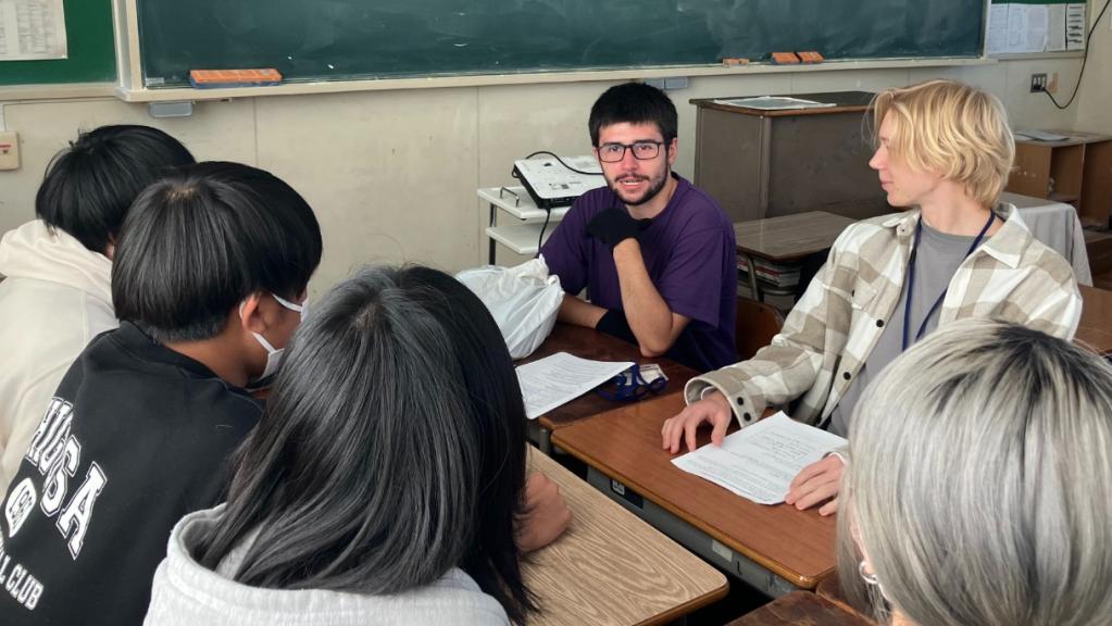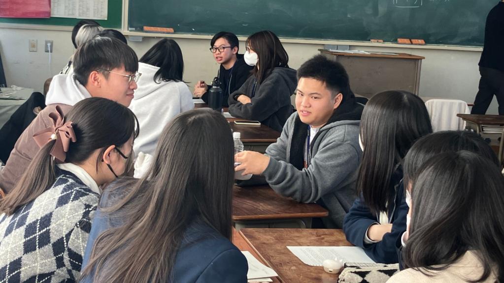 The first part of the program focused on self-introductions and Inquiry-Based Learning (IBL) presentations by Chigusa High School students. NUCB students were divided into small groups and joined second-year International Studies classes. Using both Japanese and English, students introduced themselves and engaged in conversation.