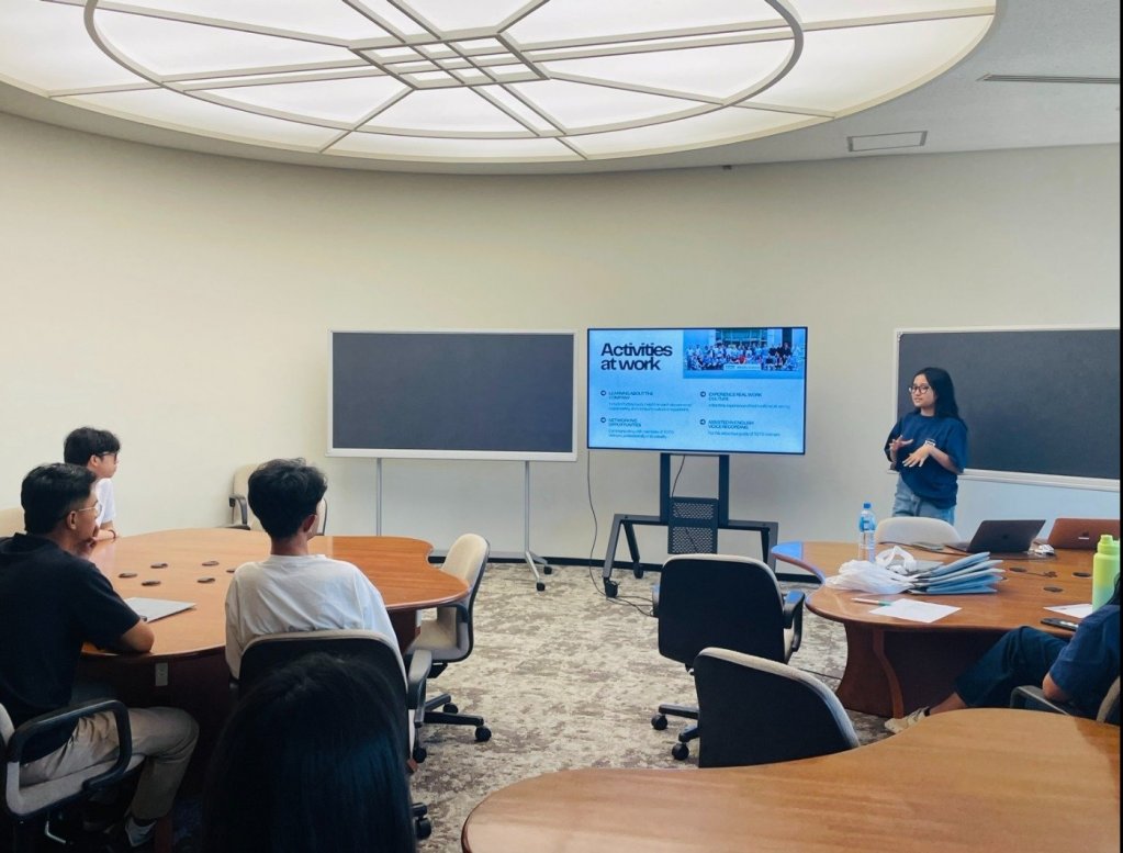 Naima, a 2nd year GBBA student, presented about the 2 weeks she spent at TOTO Vietnam as part of the CAPI Program at NUCB, in which students can do internships at Japanese companies in the Southeast Asian market, completely in English.