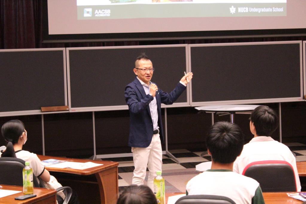 The second Open Campus of the 2025 academic year was held on Sunday, July 27th, at NUCB Undergraduate School’s Nisshin Campus. Despite the extreme heat, a large number of guests gathered on campus. Guests arrived via shuttle buses from three designated pickup points and were warmly welcomed with smiles by several GBBA student volunteers.
