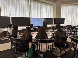 After completing the check-in, participants attended a session about the GBBA program in the CGC, a classroom featuring large windows with a beautiful view of the lake. Seated around hexagonal tables in a friendly and welcoming atmosphere, they listened to an explanation about the GBBA program.