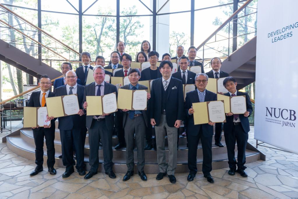 On March 22, 2025, Nagoya University of Commerce held the 2024 Faculty Award Ceremony for Education and Research at the Nisshin Campus, celebrating the outstanding achievements of 26 faculty members—15 in the field of education and 11 in research. The Faculty Award system at the university recognizes those who have made significant contributions to education or research during the academic year. In the field of education, the "Teaching Award" is presented to faculty members who have received exceptional ratings in class satisfaction surveys and set a strong example for their peers. In research, the "Research Award" is given to faculty members who have achieved remarkable success in their research activities. Additionally, a new "Research Leadership Award" was introduced this year to honor faculty members who have made significant contributions to promoting research activities within the university.