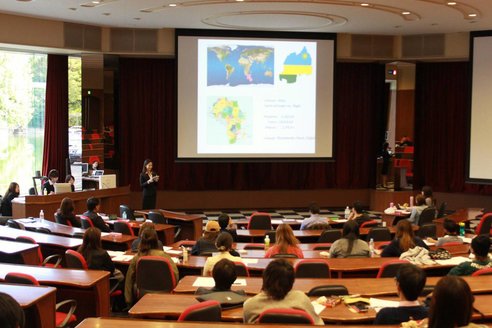 発表会では、日本と海外との子育て支援の違いや領土問題など世界の社会問題を多く取り上げていました。中には海外留学中に直面した課題について研究している学生も。司会進行から発表、その後の質疑応答に至までコミュニケーション学部らしく全て英語で行います。