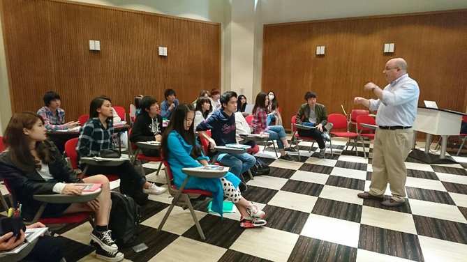 国際学部の学生が受講するReading, Listening, Writingの講義とこのCommunicationの講義で取り扱うトピックは相互に繋がっており、学生が共通のトピックに対し講義種類毎に多様なアプローチを使用し深く学習することを可能にしています。英語を使用することに集中するのではなく、英語で何を伝えたいかという中身にも厚みをもたせられるこの学習メソッドが、学生が卒業後国境を越え活躍をするのを支えています。もちろん語学取得に重要な同じ単語、構文、内容に出会う高い頻度を保つことにも繋がり、学生の英語能力の効率的な向上にも役立っています。