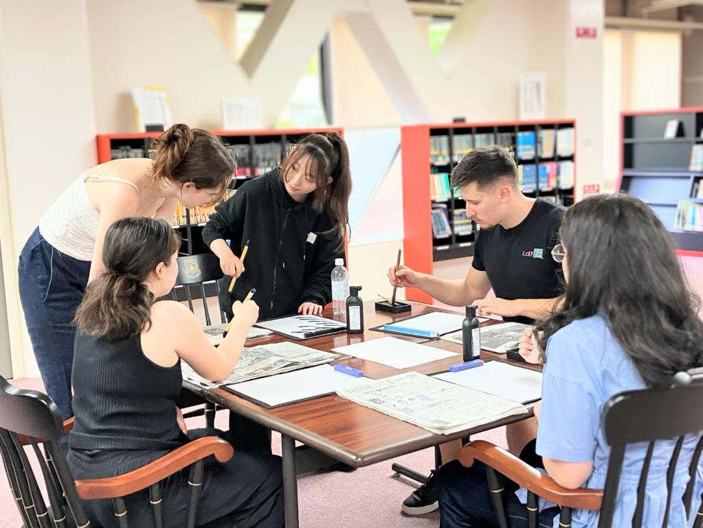 名古屋商科大学では、毎年100名を超える外国人留学生を受け入れており、留学生が日本文化への理解を深めるられるよう、多様な国際交流イベントを年間を通じて継続的に実施しています。その一環として書道体験イベントを開催し、23名の外国人留学生および18名の学部生が参加しました。