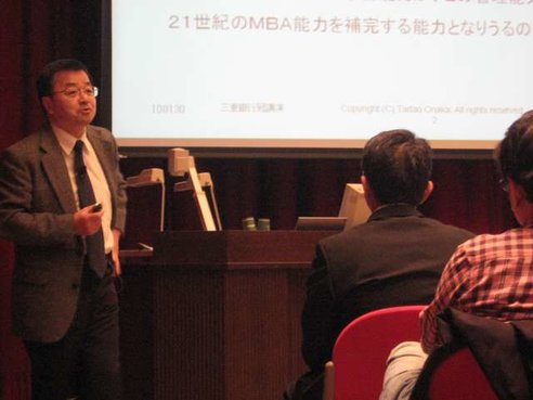 大学院では三重銀行冠講座としてビジネス公開講座を開催。第2回となる今回は、本学MBAで教鞭をとり、人事コンサルティングの第一線で活躍されている大中忠夫氏にお話いただきました。テーマは、「21世紀型MBAの学び方活かし方」。従来の欧米型MBAの課題と、これからの日本型MBAの可能性と活かし方について語っていただきました。