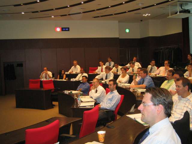 現在、オランダのロッテルダムにあるエラスムス大学から33名のビジネスパーソンが来学され、講義や会社見学が行われます。今日は日本のビジネスモデルと知的財産権についての授業や、トヨタから講師を迎えて「TOYOTA方式」についての授業が行われ、沢山質問が飛び出しました。