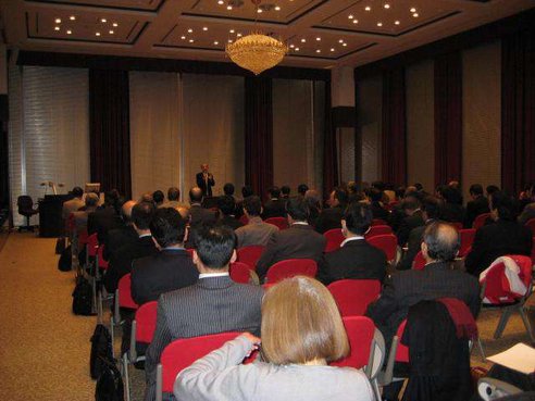 中小企業診断協会講演会が開催されました。 本日、大学院伏見キャンパスにおいて中小企業診断協会の講演会が行われました。テーマは「本年の我が国経済の行方」。 講演後には質疑応答の時間が設けられました。講演者と参加者の間で活発な質疑応答が行われました。