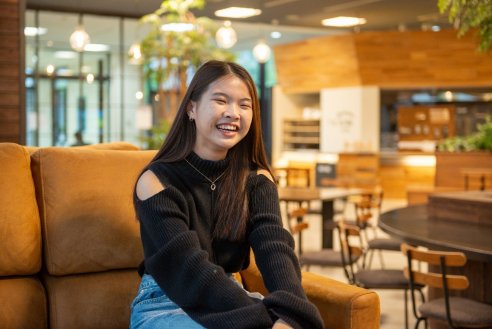以前旅行で日本に来たことをきっかけに日本に興味を持つようになり、日本語学習を始めました。大学進学へ向けて東京の日本語学校に通う中で、日本の大学をたくさん調べ、ビジネスを学べる名古屋商科大学を知りました。大学のウェブサイトで見たキャンパスがとても綺麗だったため、進学を決意。1年次から後夜祭運営委員会に所属し、後夜祭に向けて仲間と共に準備し、作り上げることにとてもやりがいを感じています。