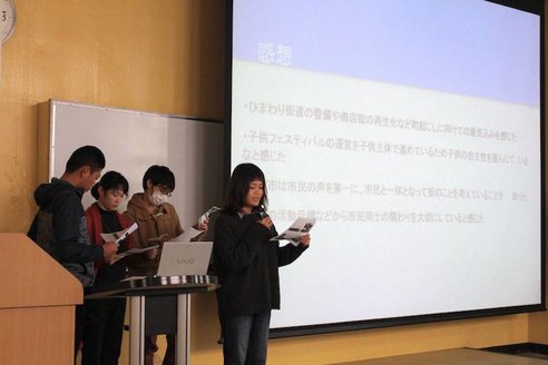 豊明市の学生チームは、まず市役所を訪問して地域のことを学び、課題を見つけ、それを解決する手法を検討。その結果、11月1日に開催される豊明秋祭りで会場を盛り上げるための飾り付けを提案しました。コスモス児童館に協力を依頼し、小学生と一緒に折り紙で花を作成したり、花の絵を書いてもらうことで、子供たちも間接的に地域への意識が芽生えました。児童館へ迎えに来た親へもお祭りの宣伝ができ、当日は児童館で会った子供たちもたくさん参加してくれて大盛況。運営スタッフ、学生、参加者が一体となったお祭りが無事開催でき、充実した取り組みとなりました。
