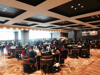 体験授業の後は名古屋キャンパスの館内を見学し、大学院のある丸の内タワーで昼食をとっていただきました。「綺麗だな〜」「かっこいい!」と施設を紹介するたびに感嘆のコメントをいただきました。設備の整った綺麗な館内で学修できることにも魅力に感じていただけたようで、紹介するスタッフも喜ぶ高校生たちを見て嬉しく思いました。