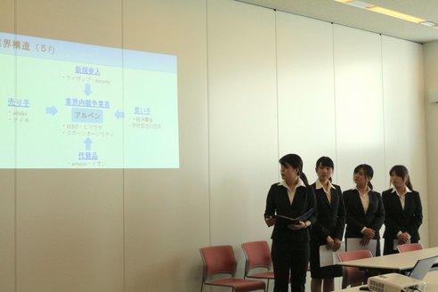 アサーティブゼミでは、早期より就職活動に向けて業界研究をすると同時に、ビジネスコンテストに挑戦したり、実際の企業などの外部向けに事業提案を行います。これまで授業で学修してきた内容や、アクティブラーニングで培った力がどれくらいついているか、実力を試す機会にもなります。今回は、アサーティブゼミ生13名が株式会社アルペンに新規事業を提案しました。実際の企業に自分たちのアイディアをプレゼンテーションする、初の試みです。
