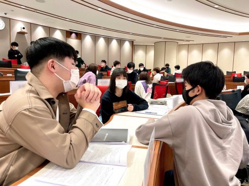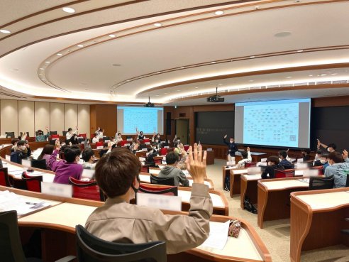 2日目は小野裕二先生によるケースメソッドによる参加型授業(アクティブラーニング)の説明からスタートしました。高校までの座学とは異なる授業スタイルということもあり、新入生たちは真剣に耳を傾けていました。そして、「アクティブラーニングにおける発言・参加姿勢はどうあるべきか?クラス貢献とは?」という質問が小野先生からなげかけられた際には、多くの新入生が積極的に挙手している姿が見られ、彼らの大学生活や授業に対するやる気の高さを感じることができました。