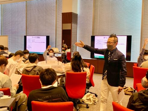 2日目は小野裕二先生よりケースメソッド授業の説明をいたしました。学びの本質や挙手発言・参加姿勢などの授業における貢献度、そして予習のあり方について教授します。また簡単なケースを用いて実際のケースメソッド授業を実施し、積極的に挙手している姿が見られ、大学生活や授業への士気の高さを感じることができました。