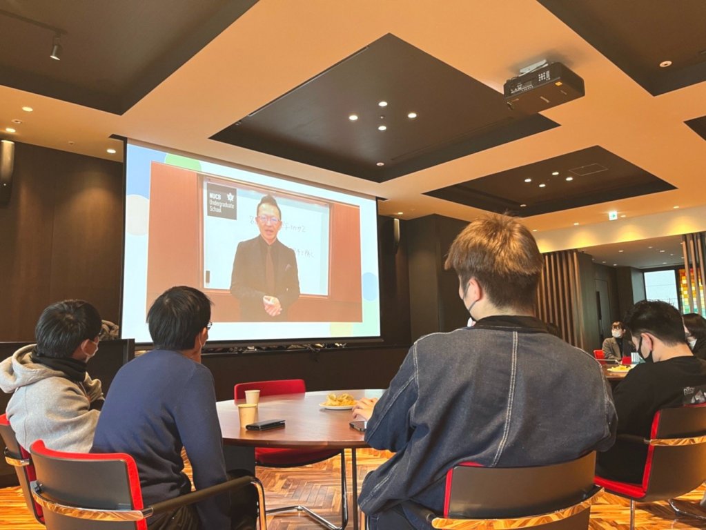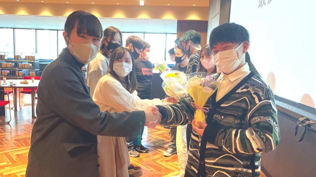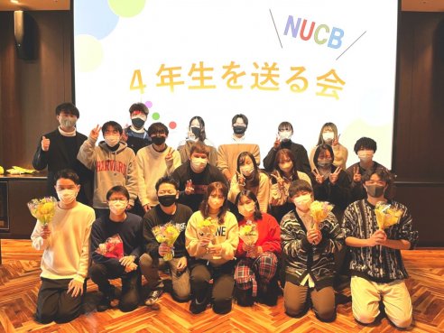 今回、広報サークルや企画運営サークルに所属する1~3年生が中心となって「4年生を送る会」を企画・運営しました。会は楽しく賑やかな雰囲気で、分析手法など授業で学んだ経営学に関するNUCBクイズからスタート。参加した学生は久しぶりに会った4年生と会話を交わしたり、みんなでビンゴゲームを行い盛り上がりました。セミナー担当教員をはじめとする教員からもビデオメッセージをいただき、4年間苦労したことや楽しかったことを振り返り、後輩たちは最後の4年生からのメッセージでは涙する学生もおり、とても心温まる素敵なイベントとなりました。次回はどんなイベントが行われるのか今からとても楽しみです。