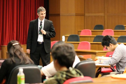 経営学部 加藤和彦先生の体験授業では、「起業家の発想で新商品を考えてみよう。」と題して、高校生の必需品とのいえるスマホで人気のアップル社の創業者スティーブ・ジョブスの発想法にならって、新商品の開発をそれぞれに考え発表していきました。ユニークで独創的な商品を発表しあい、刺激的な講義に皆さん楽しそうに受講している様子でした。