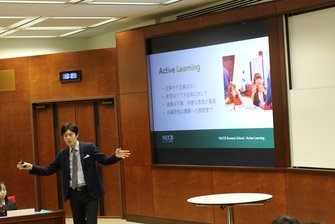 12月7日(水)に大学見学会が日進キャンパスで行われました。岐阜県立羽島高等学校の1学年の40名が来学されました。特色説明や在学生による留学体験の発表、施設見学を通して高校とは異なるキャンパスライフに新鮮さを感じているようでした。体験授業では本学のアクティブラーニングを行いました。アクティブラーニングとは、普段生徒が参加している「聴講型」の授業ではなく、学生が主体となって発言や発表を講義中に行う「参加型」の講義です。実際に、経営学部長の栗本博行教授による「レーシングチーム ブラハム(F1)」というケースを基に「戦略的思考」のテーマで授業を受けていただきました。1950年と2013年のピットワークの映像をご覧になり、どの点に変化があったのかひとりひとりが隣の方と意見を出し、みんなに共有をするといったスモールグループとラージグループも体験していただきました。ラージワークでは周りの意見を聞き、自分の意見との違いを感じたため、「へ〜そんな意見もあるんだ!」、「知らなかった」などの声が上がりました。在学生の発表では、本学経営学部3年の学生によるギャップイヤー・プログラムや留学生との交流をまとめたプレゼンテーションが行われ、みなさん関心を持ってくださり、「私もあんなPowerPoint作れますか?」とのご質問もございました。みなさんにとって有意義な時間を過ごしていただけたようです。名古屋キャンパスではどなたでもご参加頂ける説明会を随時、開催しております。在学生による体験談や、アクティブラーニングの体験授業など、毎回内容が異なりますのでぜひご確認の上ご参加ください。