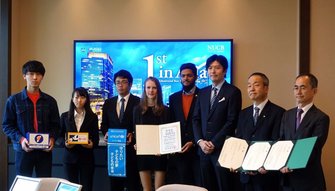 10月21日(土)・22日(日)の本学学園祭「三ヶ峯祭」において、第20回NUCB国際協力チャリティーバザーを実施し、関係各位の皆様より多大なご協力を賜りました。チャリティーバザーの売り上げを寄付金として、12月8日(金)に寄付金贈呈式を大学院にて行いました。