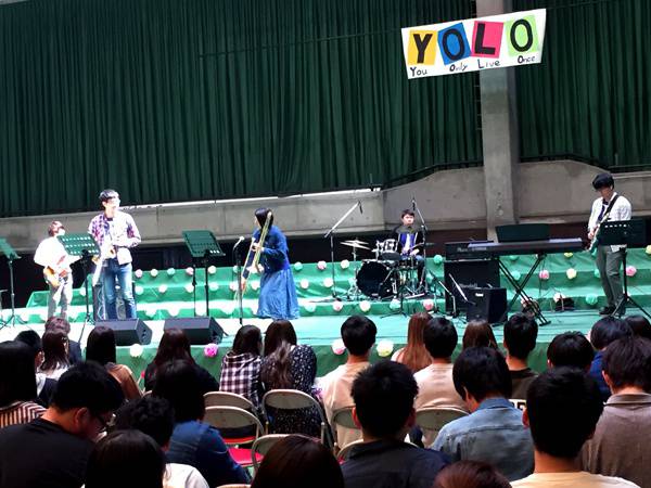 歓迎会では、軽音楽部や吹奏楽部の演奏やストリートダンスサークルのショーケース、ビンゴ大会などがステージで行われ、多くの学生がステージ前に集まり興味深くイベントに参加する姿にこれからの明るい学生生活が目に浮かびました。