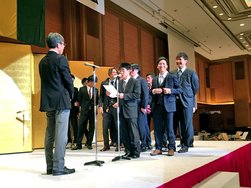 4年生が主催するこの会は、学長先生をはじめ、日頃からお世話になった恩師先生方へ4年間の謝恩の意を込めたパーティーとして盛大に行われました。教職員を代表していただいた理事長「栗本博行先生」からの挨拶では、これから将来を担っていく彼らに勇気と激励のメッセージが伝えられました。