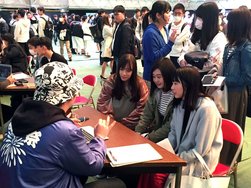 会場では各クラブやサークルの紹介や留学プログラムや資格対策講座の相談会が行われるなど、先輩と楽しく話す新入生がとても眩しく輝いていました。