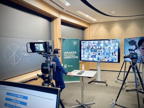 名古屋校丸の内タワー13Fに全ての授業に対応するために10室新設された遠隔授業スタジオは、朝から緊張感と高揚感に満ち、教職員が一丸となって9科目同時オンライン授業を無事にスタートさせることができました。新型コロナウイルスの影響を鑑み、授業を「対面遠隔形式」で行うことを決定してから本日まで、試行錯誤を重ね、対面授業と遜色のないケースメソッド教育を提供できる環境を構築することに日々取り組んできました。本学では、兼ねてより一部の授業をオンラインでのケースメソッド型授業を実施していました。これまで蓄積してきたノウハウがあったからこそ、実現することができました。何よりも、受講生の方々がどんな状況でも前向きに学ぶ高い意欲を持ち、開講形態は変わっても積極的に「参加型」として受講してくださっています。教員、受講生双方の熱意によって、対面型と変わらない温度で活発な議論がなされています。