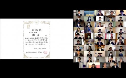 令和元年度優良学生表彰式をオンラインで開催いたしました