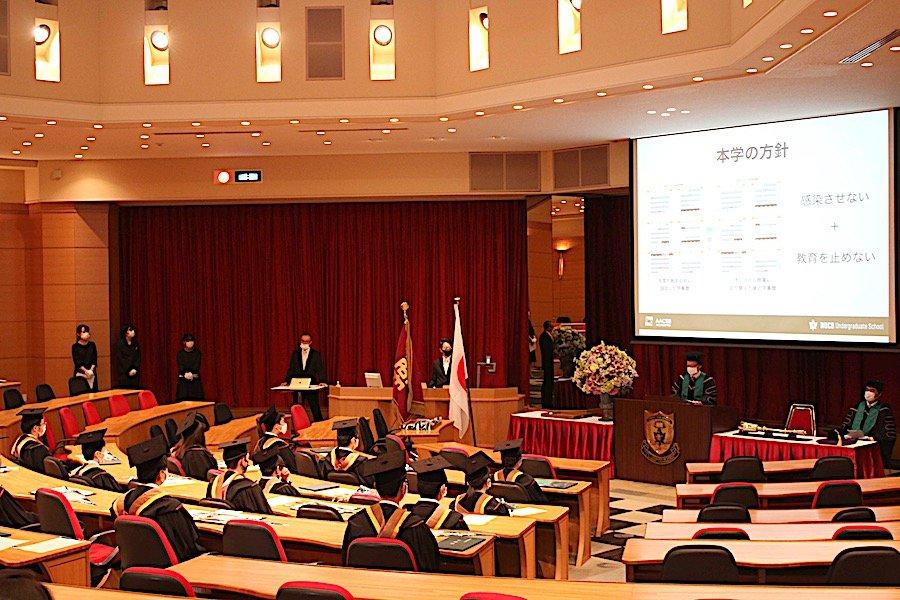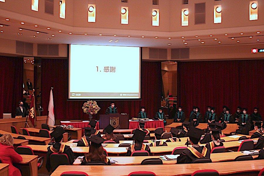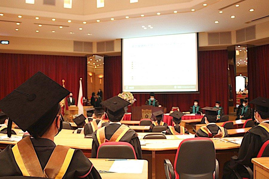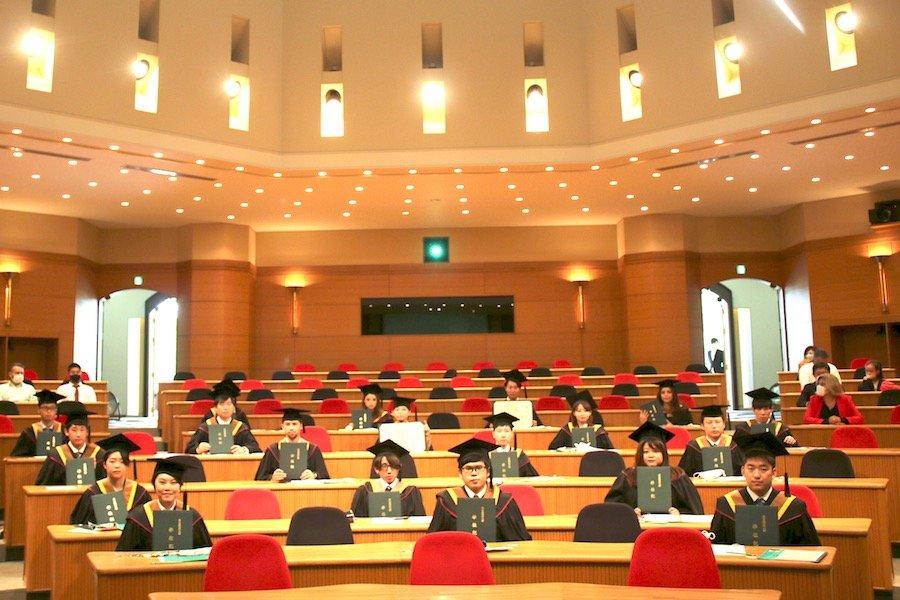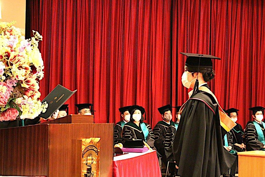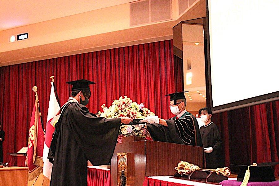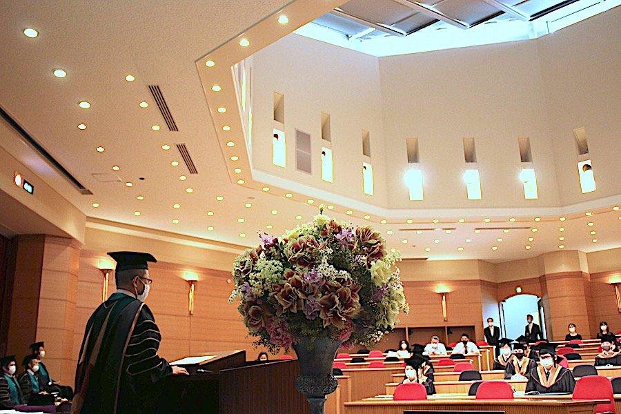 2020年3月の学位記授与式は残念ながら新型コロナウイルス感染症の影響から実施することが叶いませんでしたが、この度の学位記授与式は新型コロナウイルス感染症の感染防止対策を講じながら、セミナー担当教員や大学スタッフが参列して細やかながらも9月卒業生の門出をお祝いすることができました。
