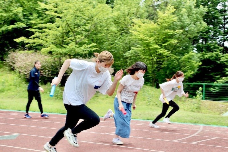 日進キャンパスにて、留学生交流団体であるCESA主催の『NUCB Sports Day』を開催しました。400メートルトラックに人工芝のフィールドを備えた全天候型本格仕様の陸上競技場を舞台に、留学生と日本人学生が日本ではお馴染みの玉入れ・台風の目・障害物競走・綱引き・リレーの5種目をチーム対抗戦で競い合いました。留学生は初めて体験する競技に四苦八苦しながらも、互いに声を掛け合いながら取り組み、イベントは大盛り上がり。さらにイベント終了後は、感染対策を考慮して屋外ウッドテラスでBBQを実施。TOKYO2020さながら、スポーツを通じた国際交流で、留学生と日本人学生の絆も一層深まったことでしょう。