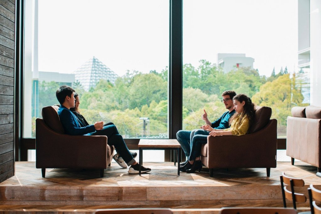 名古屋を中心に展開する人気カフェが名商大店として営業。野菜たっぷりランチやハンドドリップコーヒーとともに、寛いで過ごせるスペースとなっており、自習をしたり留学生と語り合う場としても活用できます。