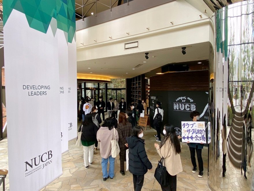 愛知県私大第1位の広大な敷地面積を誇り文武両道を実現する日進キャンパスには、体育系と文化系あわせて約50ものクラブ・サークルがあります。在学生が各ブースで新入生を迎え、魅力ある活動内容を紹介しました。大学生活の楽しみのひとつでもあるクラブ・サークル。新入生は複数のブースを回りながら大学生活のイメージを膨らませています。