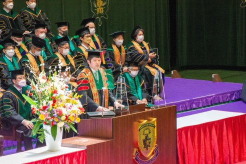 栗本博行学長の式辞では、「名商大とは何か」「MBA教育」「型破りな夢」の3つのテーマについて語られました。1953年開学以来一貫して実学教育を提供し、ケースメソッド教育や海外提携校、リーダー教育と、常に開拓者精神を追求し社会に貢献する使命を実現してきた本学。新入生に向け、自らの選択を正解に導く力を修得し、社会を豊かにするためにその力を発揮することの重要性が伝えられました。また大学での交流は教育の重要な価値であり、学びの幅を広げることに繋がることも語られました。