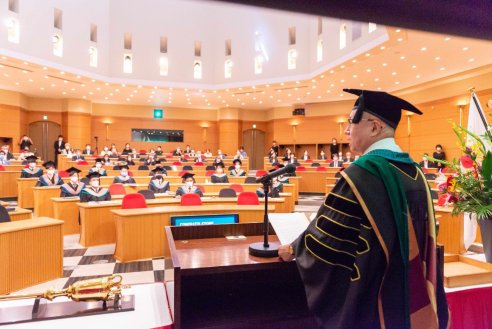 式では名古屋商科大学ビジネススクール横山研治研究科長から心温まるお祝いの言葉をいただき、スピーチの最後に「リーダーとしての自覚を持ち、新しい環境でも周囲と協力し、常にベストの状態で仕事に取り組むことが大切」と、実践的な教訓を頂戴した卒業生は真剣な表情で耳を傾けていました。