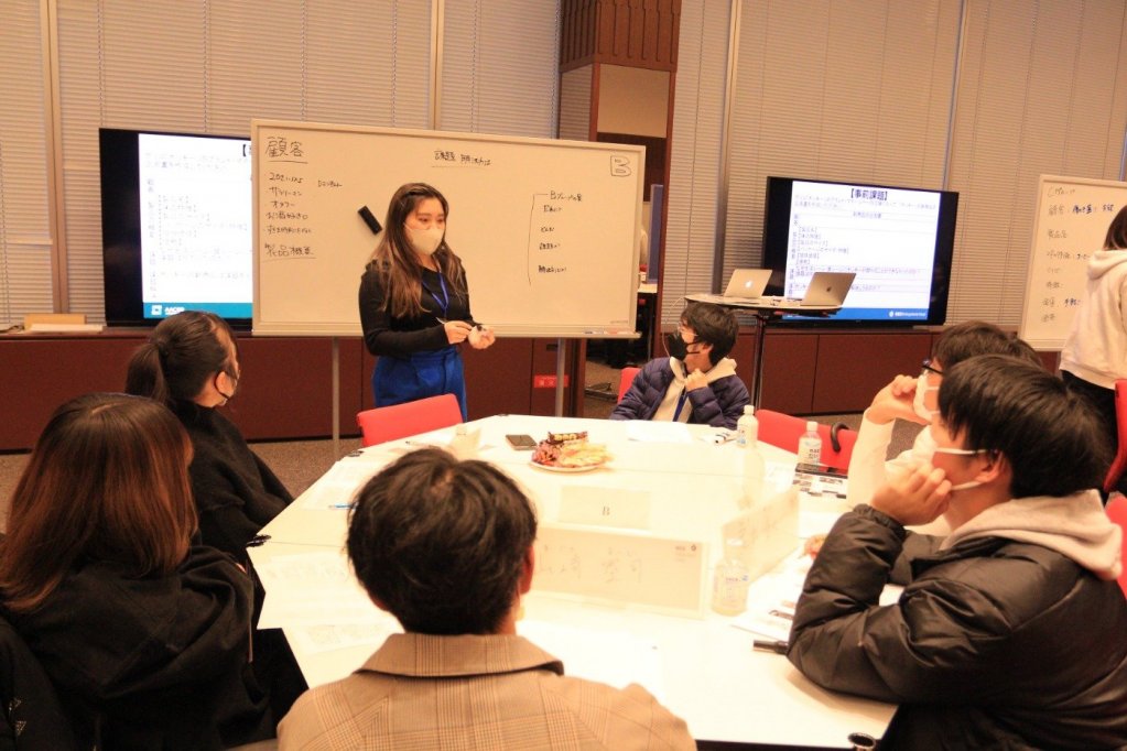 小野裕二教授より、本学のケースメソッド授業についての説明や、授業への取り組み方などを伝授し、実際にケースメソッド授業を体験。今回は、江崎グリコのケースを用い、ポッキーのマーケティング戦略をグループで議論しました。各グループ熱心に意見を交わし、最後にグループの意見をまとめ発表。参加者の楽しそうな様子が印象的でした。
