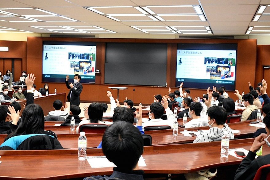 経営学部長の韓 尚憲教授より、入学後ケースメソッド授業を受ける皆さんへ、ケースメソッドのメリットや授業の臨み方、予習の必要性などをお伝えしました。参加者から積極的に挙手発言があり多くの意見が飛び交いました。
