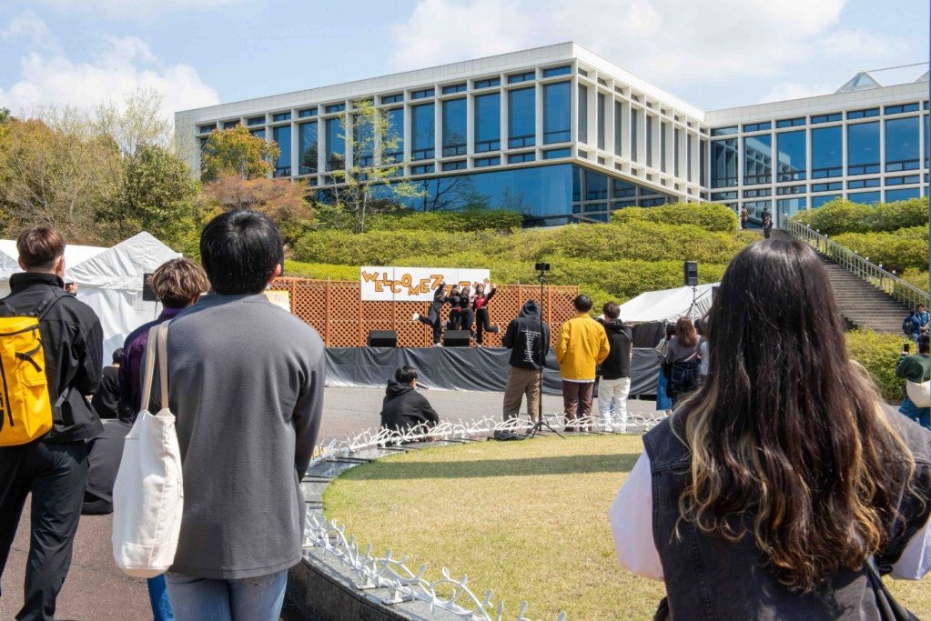 4月3日(月)新入生オリエンテーションのイベントの一環として、学生会執行部が主催する「新入生歓迎会」が開催されました。今年度の歓迎会は、マスク着用の義務なく、新入生が自由に参加できるように屋外での特設ステージ「WELCOMEステージ」でのステージ企画、学生食堂「コミュニティパビリオン」を開放して行ったクラブ・サークル紹介など昨年以上の大規模な会となりました。700名もの新入生に参加いただきコロナ前の盛大で活気のあるイベントとなりました。新入生の皆さんがこれからの4年間で様々な体験や挑戦を通して、大きく成長してくれることを願うとともに、大学として全身全霊でサポートしてまいります。